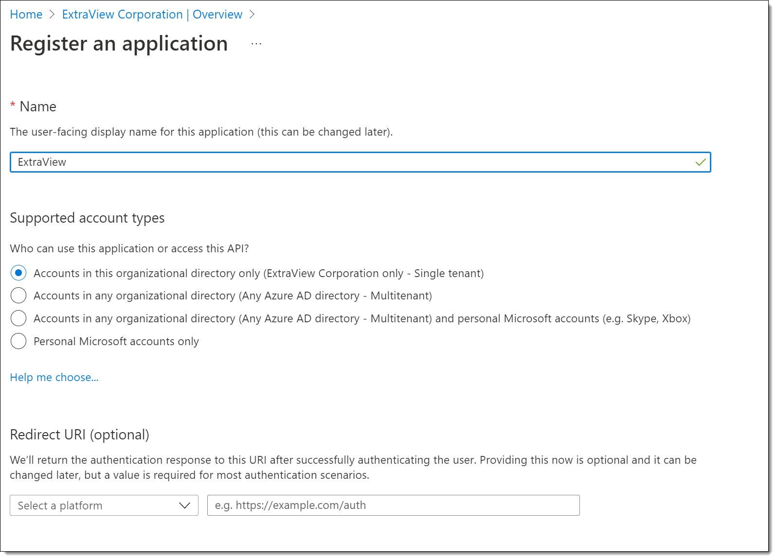 On the Overview screen, note down the Application (Client) ID and the Directory (tenant) ID if you have not already done so. These will be required when you configure the ExtraView Token interface.
