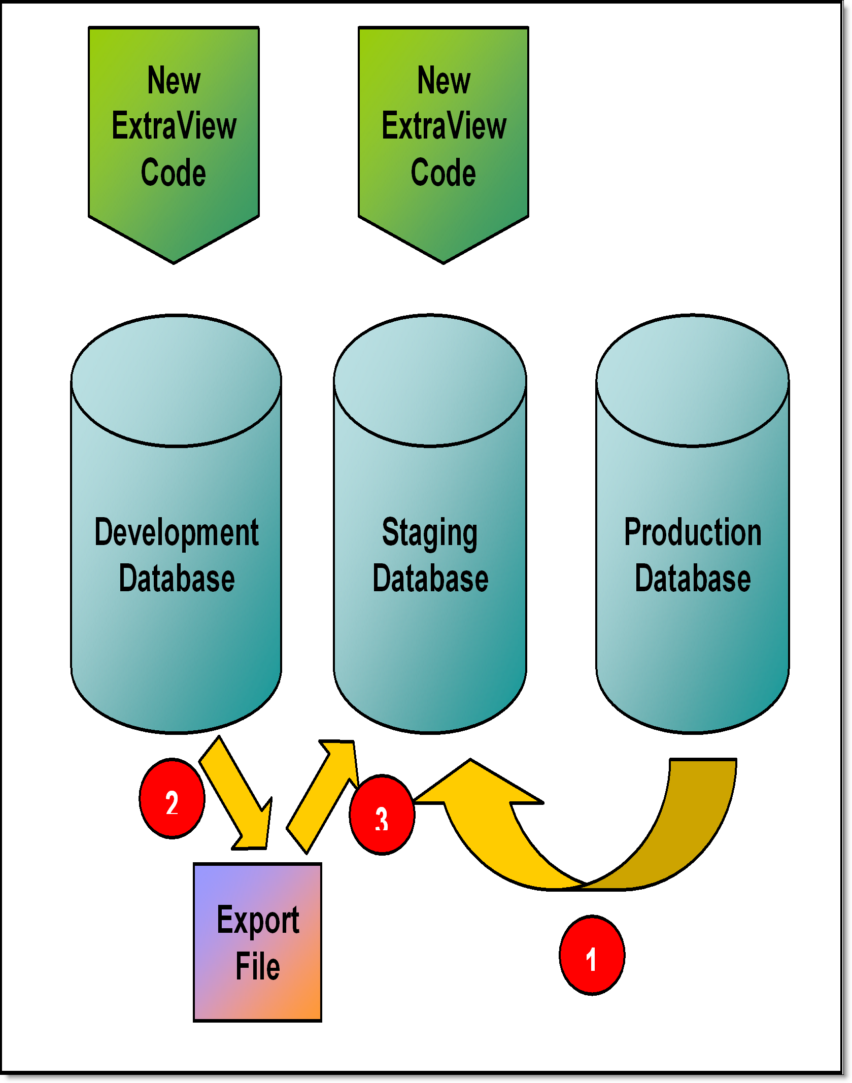 - If you are upgrading ExtraView and there is a database upgrade script to run, do this now against the production database. It is critically important that the version number of the ExtraView database in the staging environment be the identical version number you are about to import from the development environment