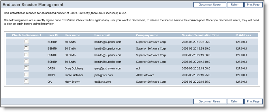 Occasionally, the administrator may wish to lock users out of ExtraView, for maintenance purposes such as creating new screen layouts or business rules or when performing a mass update of many issues. To facilitate this requirement, the feature Disable and Enable User Access is available from the Administration, Operational Tasks menu.